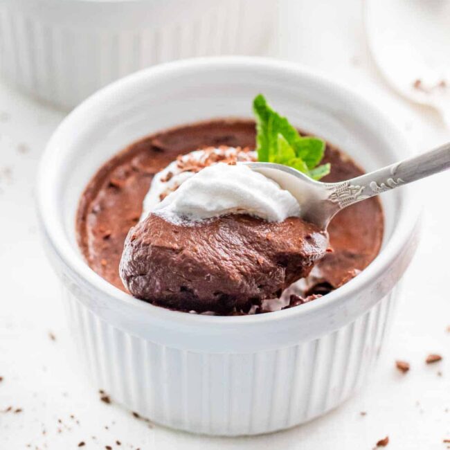 While I used whipped cream and chocolate shavings to serve up my mousse, you can enjoy it all on its own or top it with whatever you like. My one pro tip: don’t skip out on the whipped cream! It complements the chocolate mousse so well. You can use a whipped coconut cream to keep this recipe vegan. Give these fun toppings a try:
