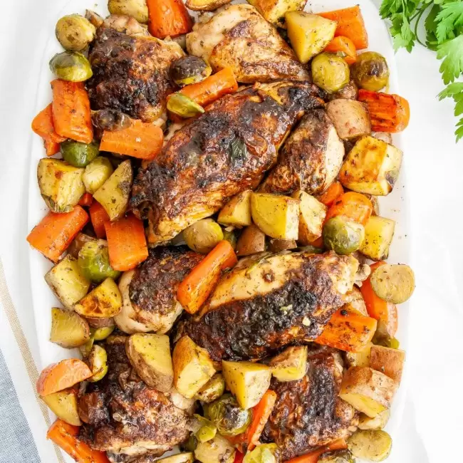 - Serve: Transfer the chicken to a serving platter, let it rest for 5 minutes before serving. Toss the vegetables in the pan juice and serve.