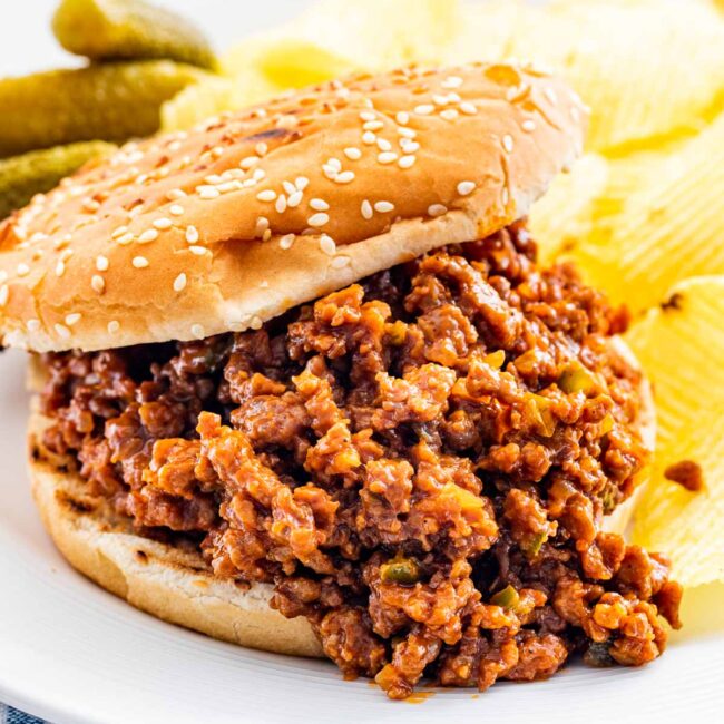 The best part about sloppy joes is that you can make a big batch and freeze it, for a hearty and satisfying last-minute meal! Whether you’re serving these up for dinner, for a potluck or even a backyard BBQ, sloppy joes are an ever-classic crowd pleaser, sure to be a hit!
